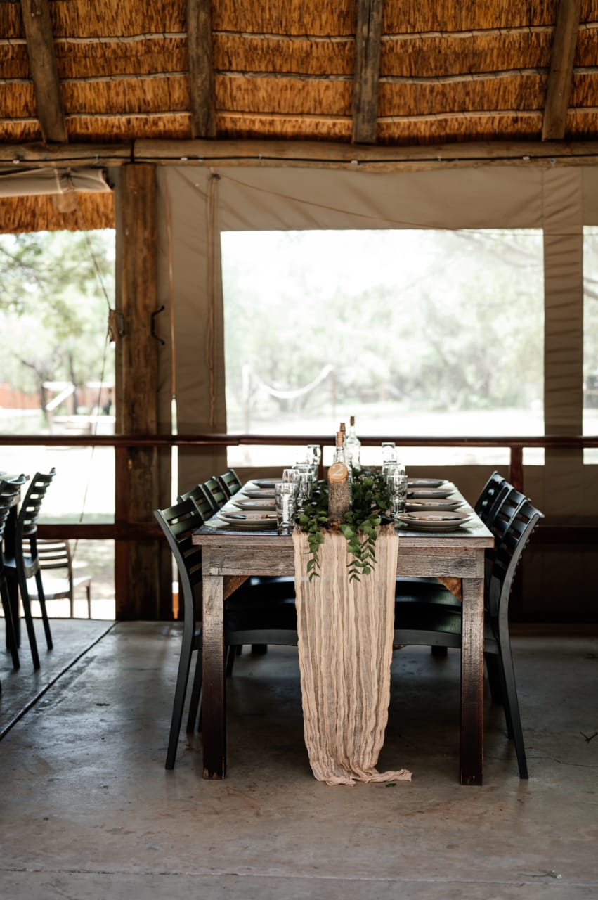A cosy lounge and fire place for winter weather. Large kitchen for group bookings. An enticing swimming pool with its natural dark-blue effect. A waterhole within sight of the lodge where the wildlife gather to drink.